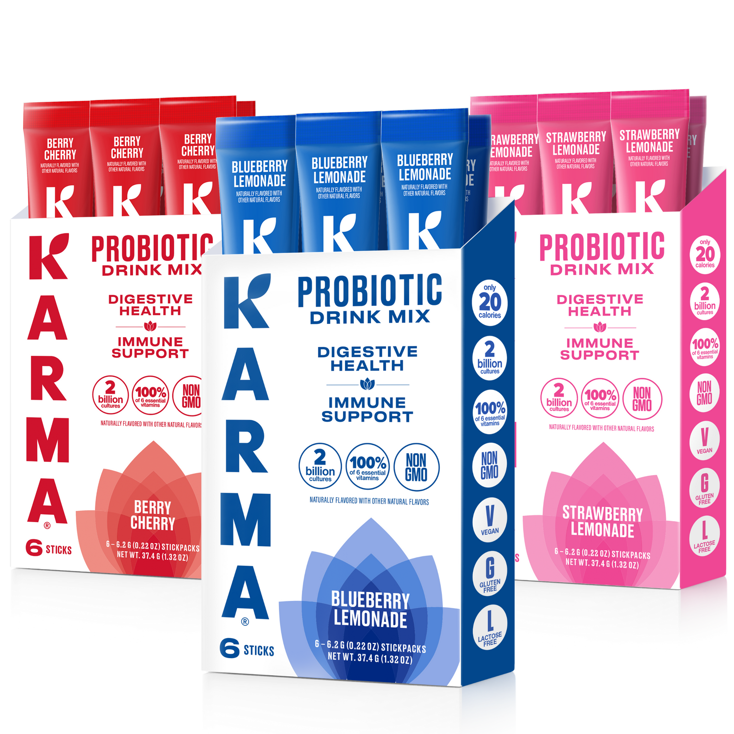 Packed with 2 billion active cultures, Karma Probiotic Stick Packs deliver over 10X the active probiotics found in yogurt—helping to optimize digestion, boost immunity, and support overall gut health. Perfect for your daily wellness routine, wherever you are.