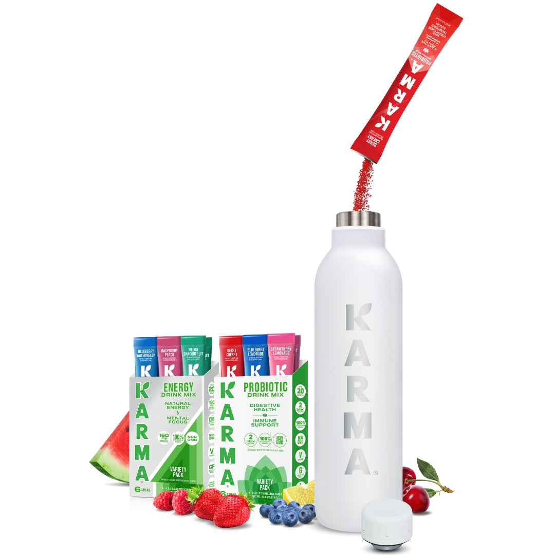 Karma Stick Packs deliver the same premium ingredients and functional benefits as our bottled Karma Water in an easy-to-mix powder.