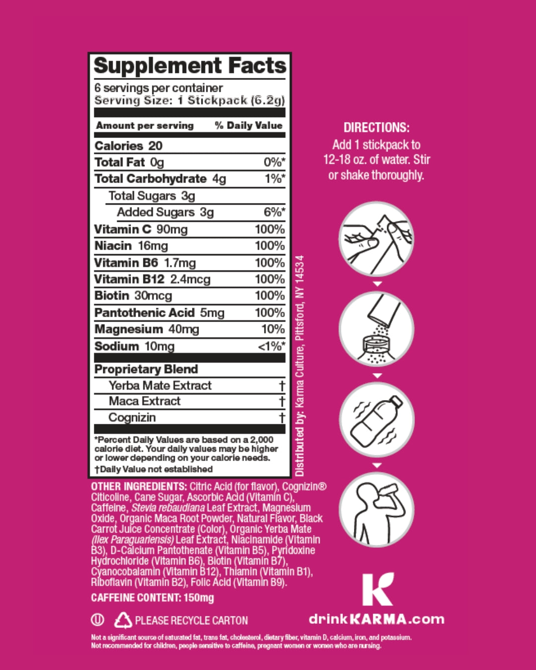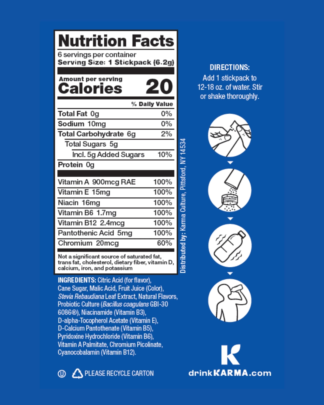 Karma Stick Packs deliver the same premium ingredients and functional benefits as our bottled Karma Water in an easy-to-mix powder. Now, you get the same freshness and potency in a convenient stick pack!